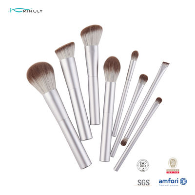 8pcs OEM ODM Travel Makeup Brush Set White Aluminium Handle